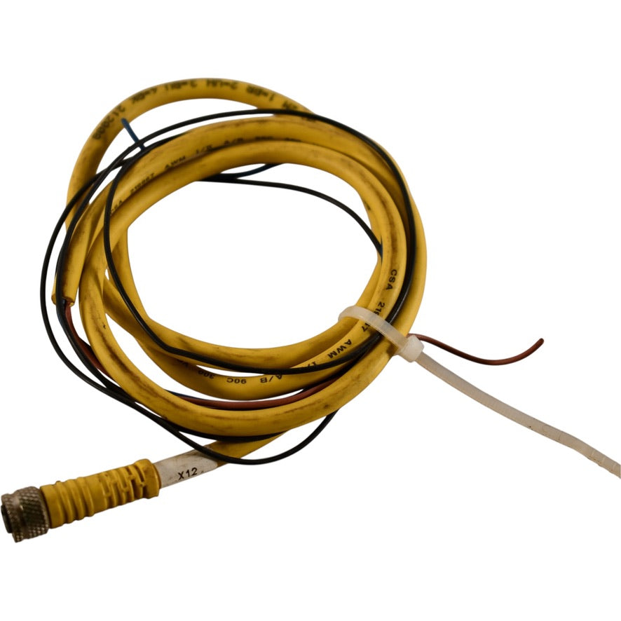 - Connectors: Features a 4-pin M8 female straight connector on one end and bare "flying" leads on the other end.