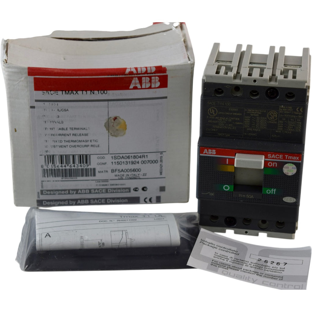 NEW ABB 1SDA061804R1 Tmax T1N 100 50A 3P MCCB 480-600Y/347V