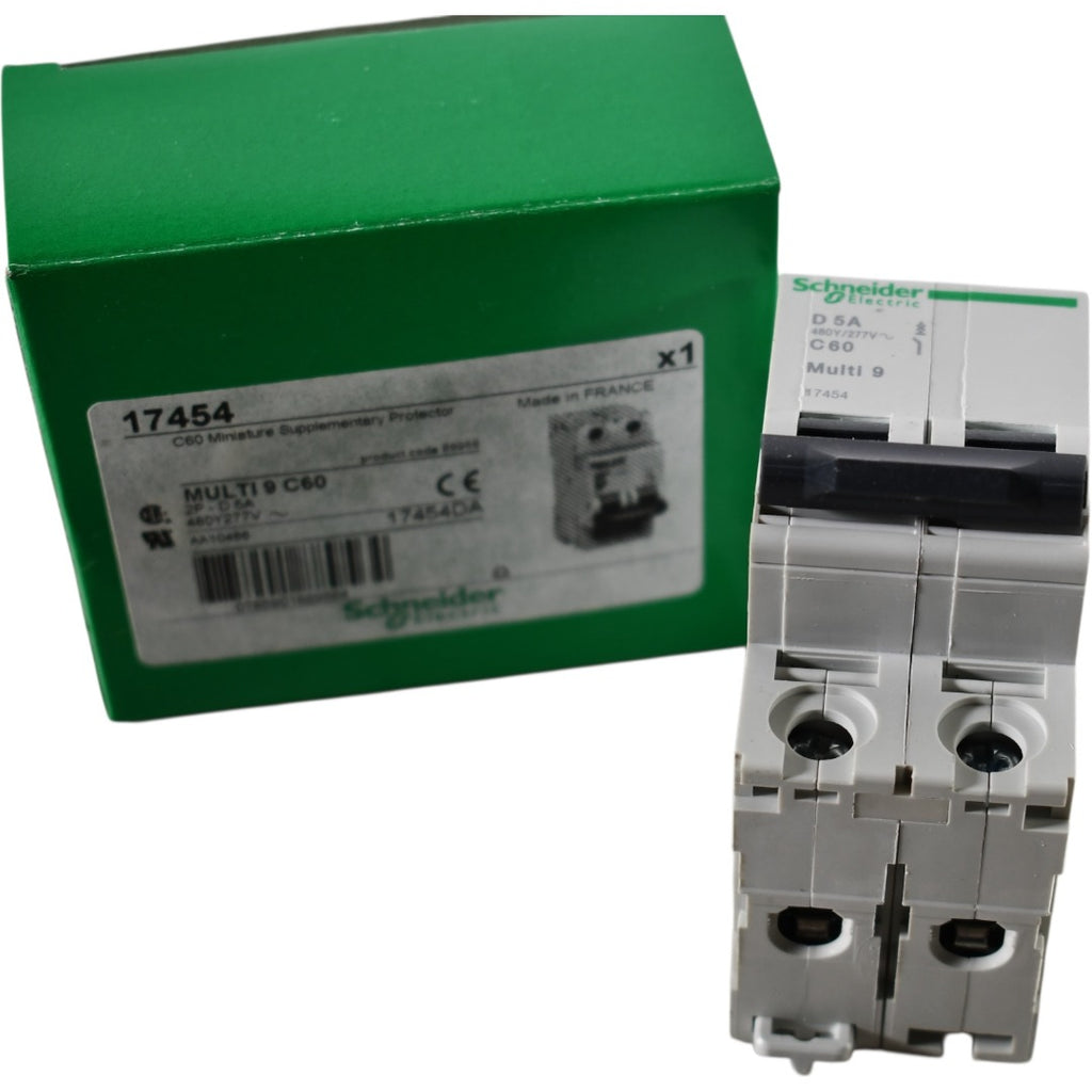NEW Schneider Electric 17454 Multi 9 C60 2 Pole 5A D Curve Supplementary Protector