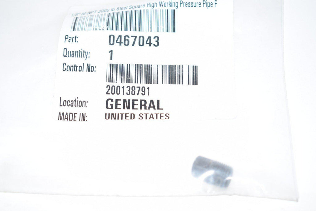 NOS, surplusLot of 2 NEW Fastenal 0467043 1/8" M-NPT 3000 lb Forged Steel Square Head Pipe Plug