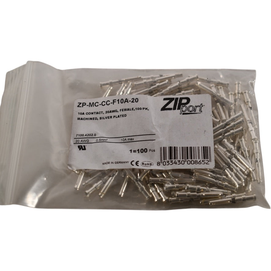NEW Lot of 100 ZIPport ZP-MC-CC-F10A-20 Female Crimp Contacts 20AWG