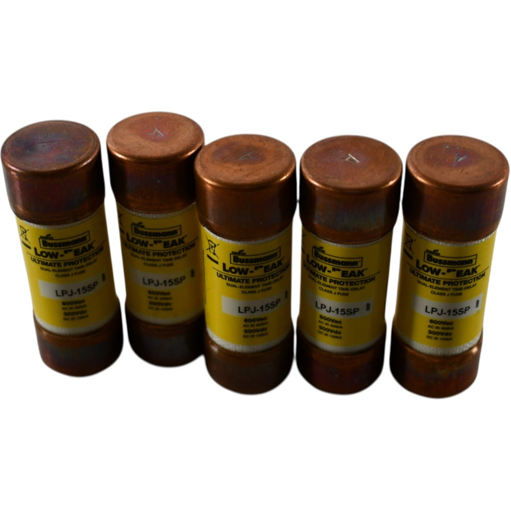 NEW Lot of 5 Bussmann LPJ-15SP Low-Peak Fuse Class J 15A 600V Time Delay