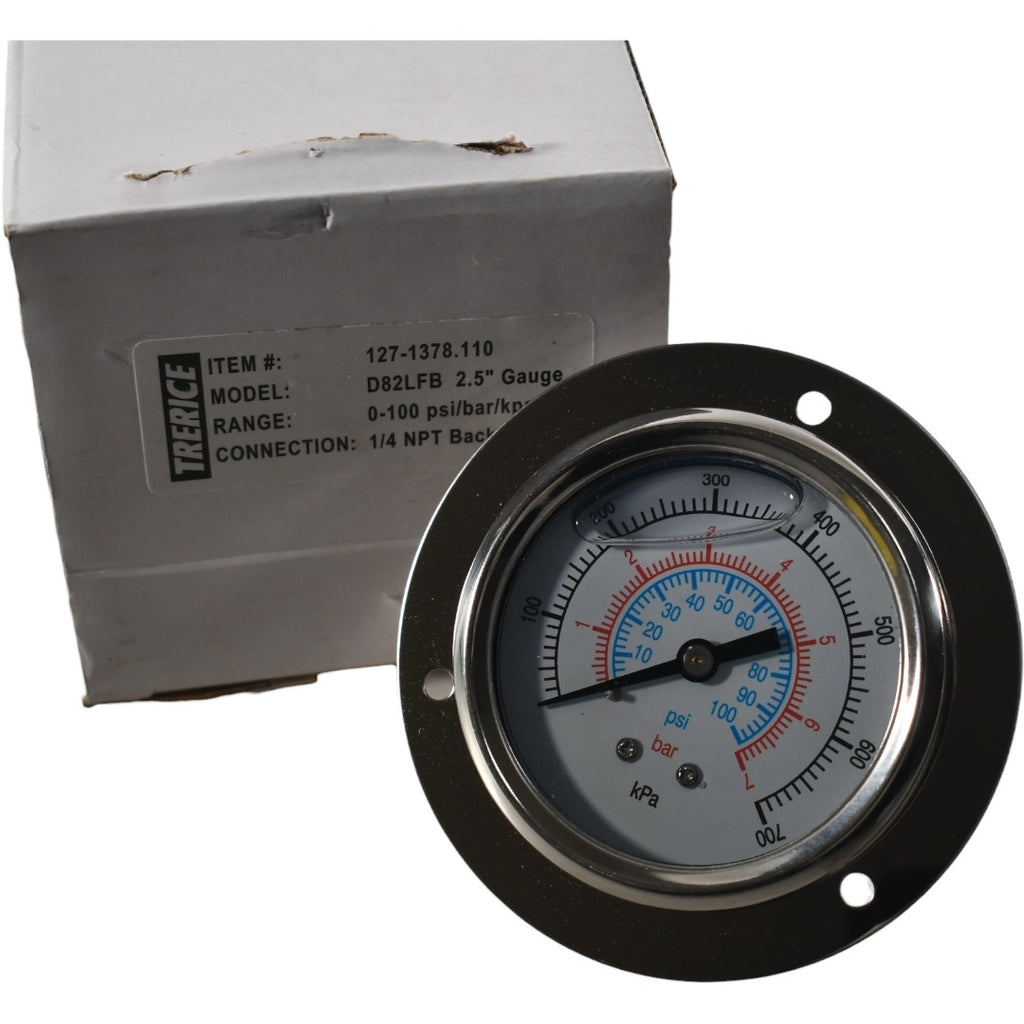 NEW Trerice 127-1378.110 D82LFB 0-100 PSI 2.5" Liquid Filled Pressure Gauge