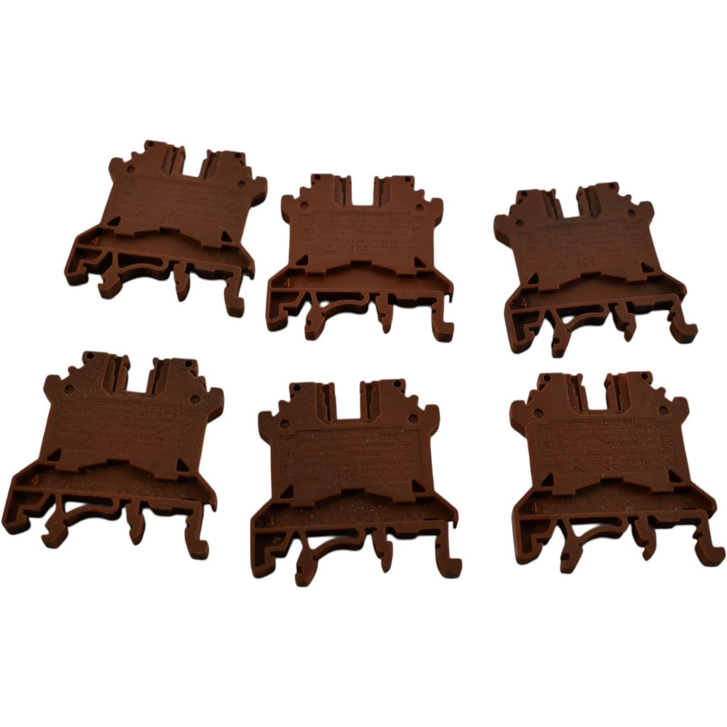 Lot of 6 Connectwell CTS2.5UN Brown Terminal Block 32A 800V 22-12 AWG DIN Rail