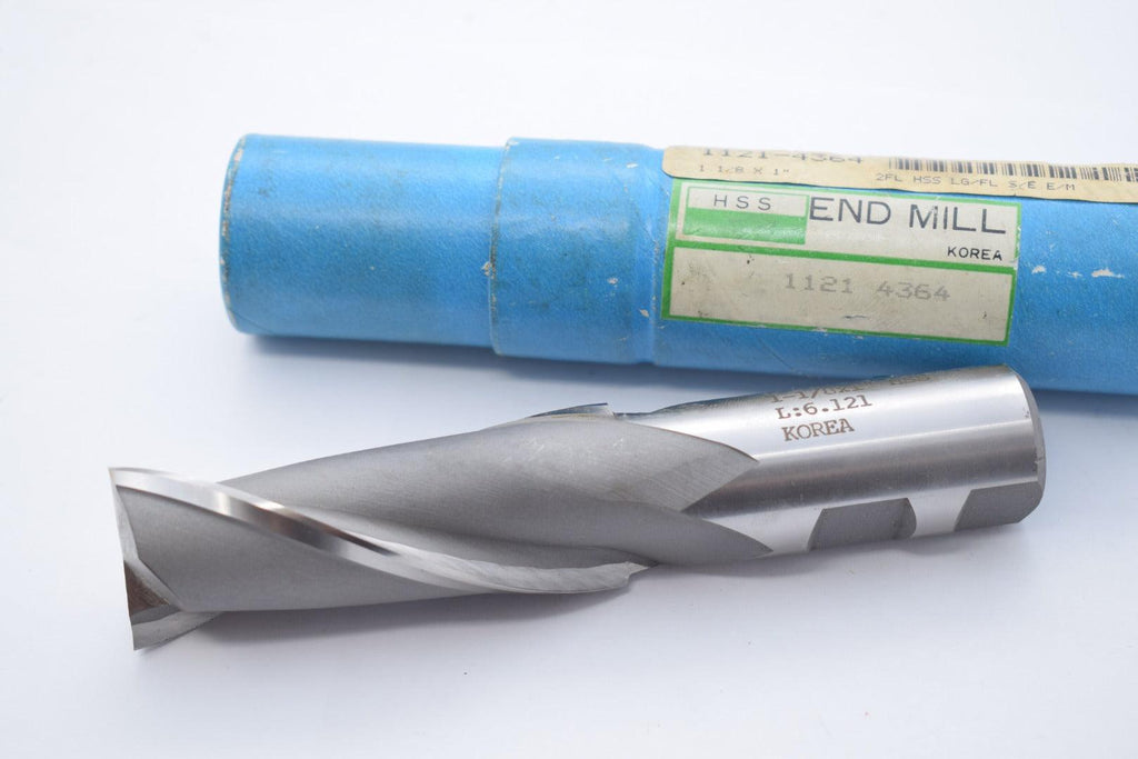 NOS, surplusNEW 1121-4364 1-1/8" x 1" HSS 2FL End Mill S/E 5-1/2" OAL Korea