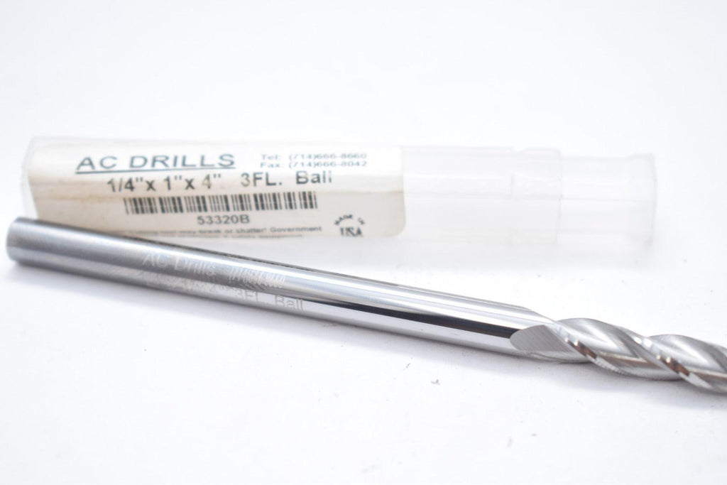 NEW AC Drills 53320B 1/4'' x 1/4'' 3FL Ball End Mill