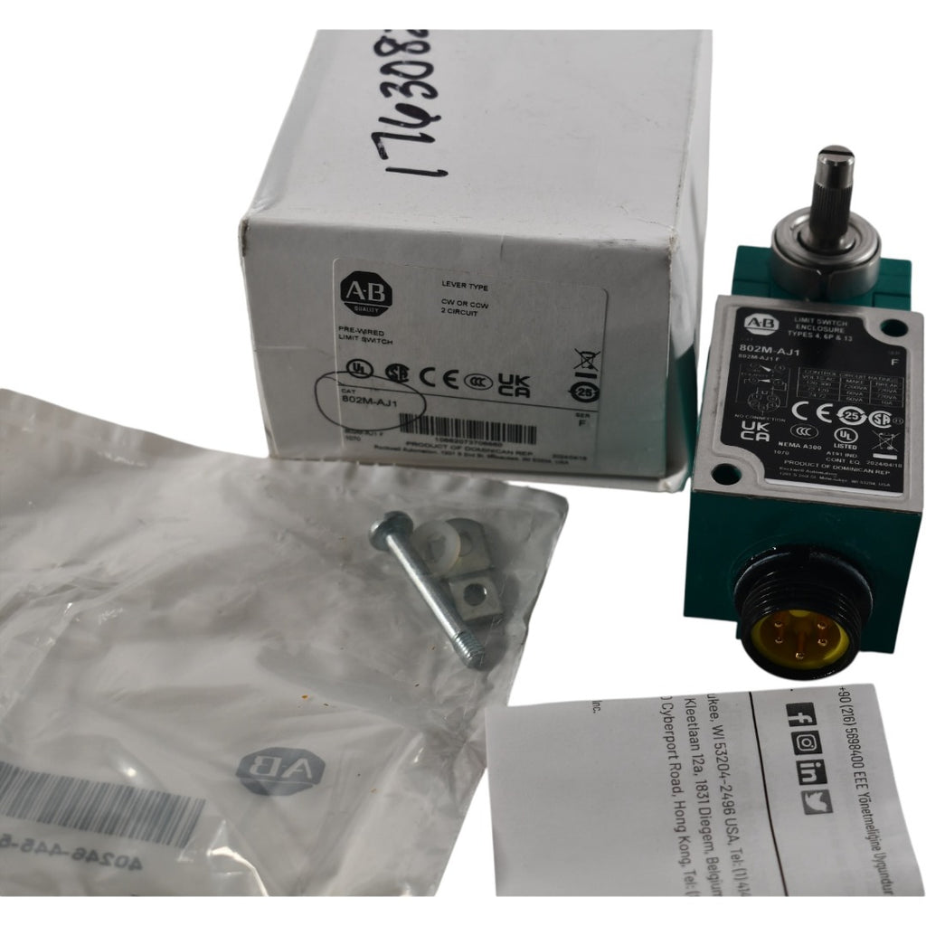 NEW Allen Bradley 802M-AJ1 Limit Switch Rotary Lever Spring Return 2 Circuit 5 Pin Mini QD