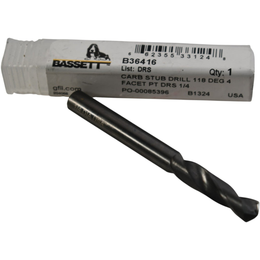 NEW Bassett B36416 DRS Carbide Stub Drill 118 Deg 4 Facet PT 1/4