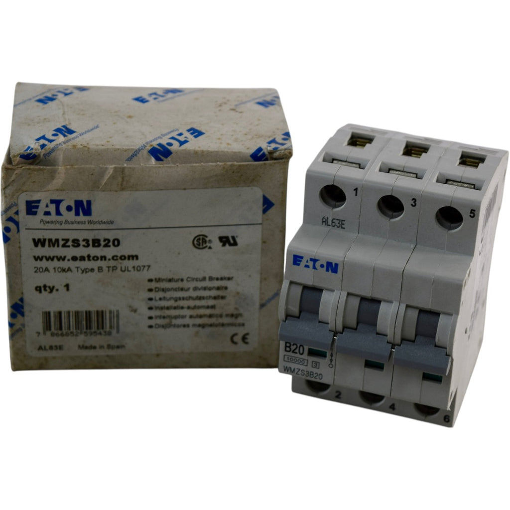 NEW EATON WMZS3B20 Circuit Breaker 20A 3 Pole 10kA Type B DIN Rail 480/277V