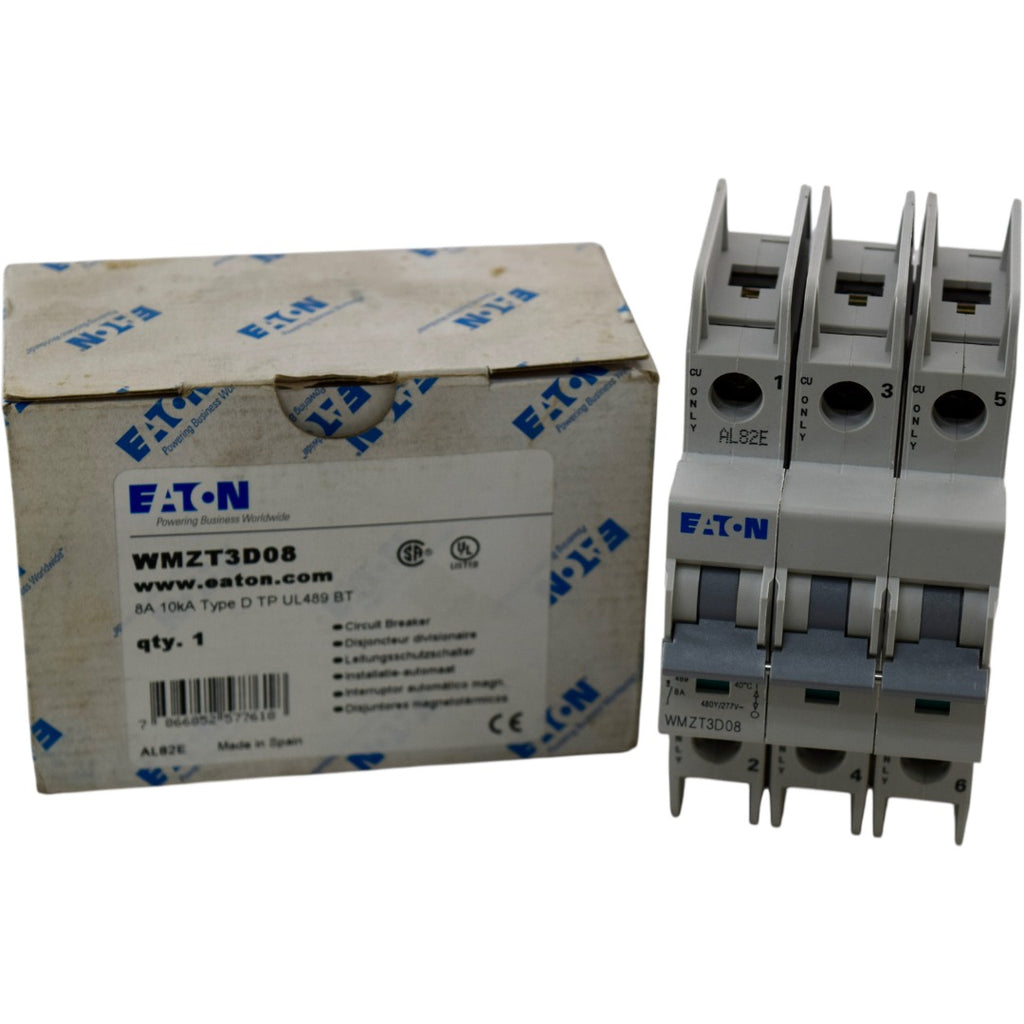 NEW Eaton WMZT3D08 Miniature Circuit Breaker 8A 3P Type D UL 489 10kA 480Y/277V
