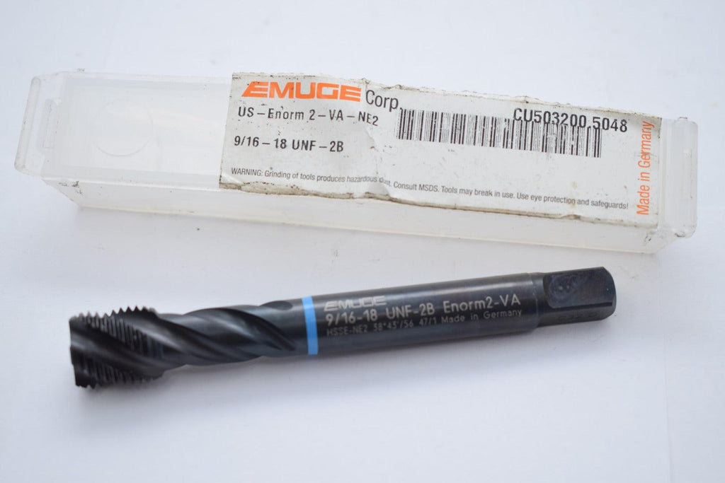 NEW Emuge CU503200.5048 Enorm 2-VA Spiral Flute Tap, Right Hand Cutting, 9/16-18 Thread, Modified Bottoming Chamfer