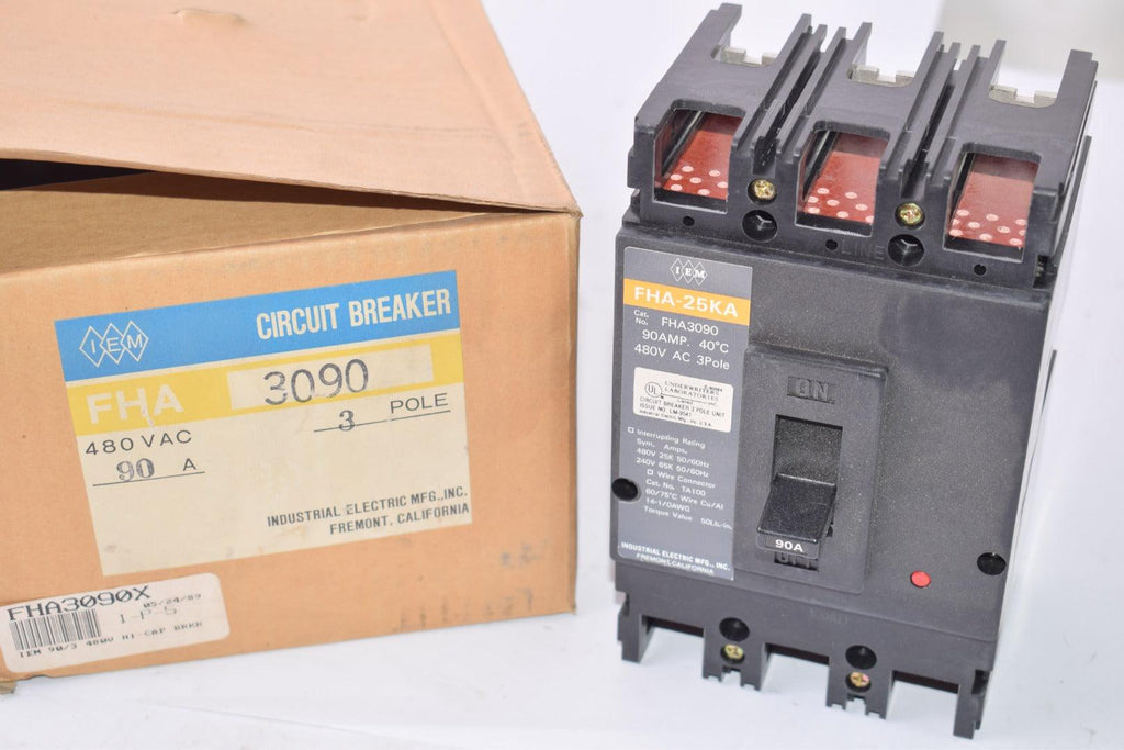 NOS, surplus in packaging. Packaging has wear.NEW IEM FHA 3090 Circuit Breaker 480 VAC 90 Amp 3 Pole Unit