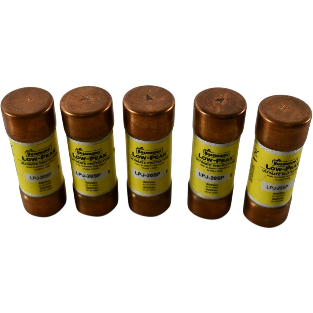 NEW Lot of 5 Bussmann LPJ-20SP Low-Peak Fuse Class J 20A 600V Time Delay