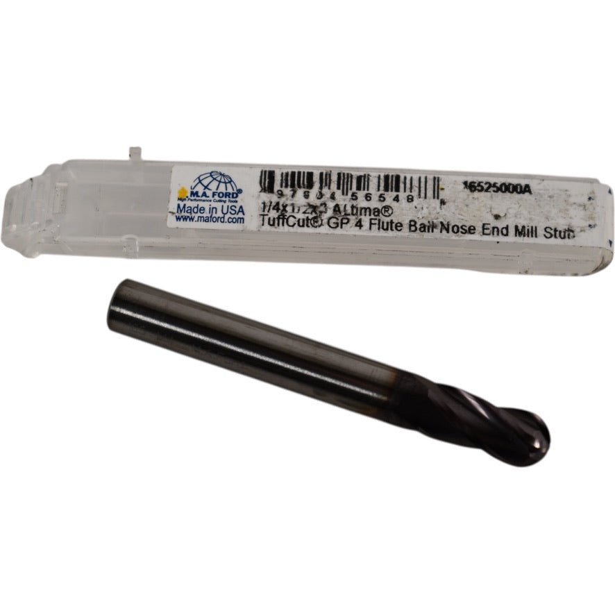NEW M.A. Ford 16525000A 1/4" Ball End Mill Carbide 4 Flute AlTiN