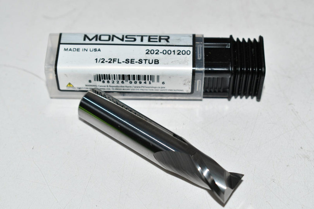 NEW Monster 202-001200 1/2 Dia, 5/8 LOC, 2-1/2 OAL, 2-Flt, Carbide Square End Mill- Single End, 30 Deg. Helix, Uncoated, USA