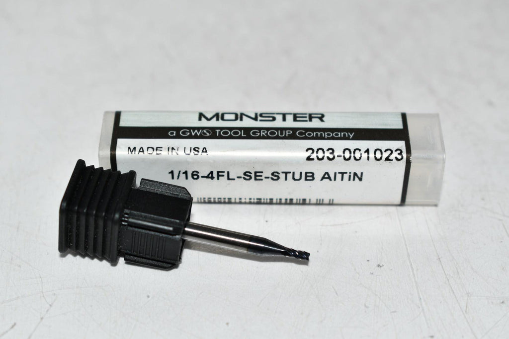 NOS, surplusNEW Monster Tool 203-001023 Carbide End Mill, 1/16In, 4FL, Single