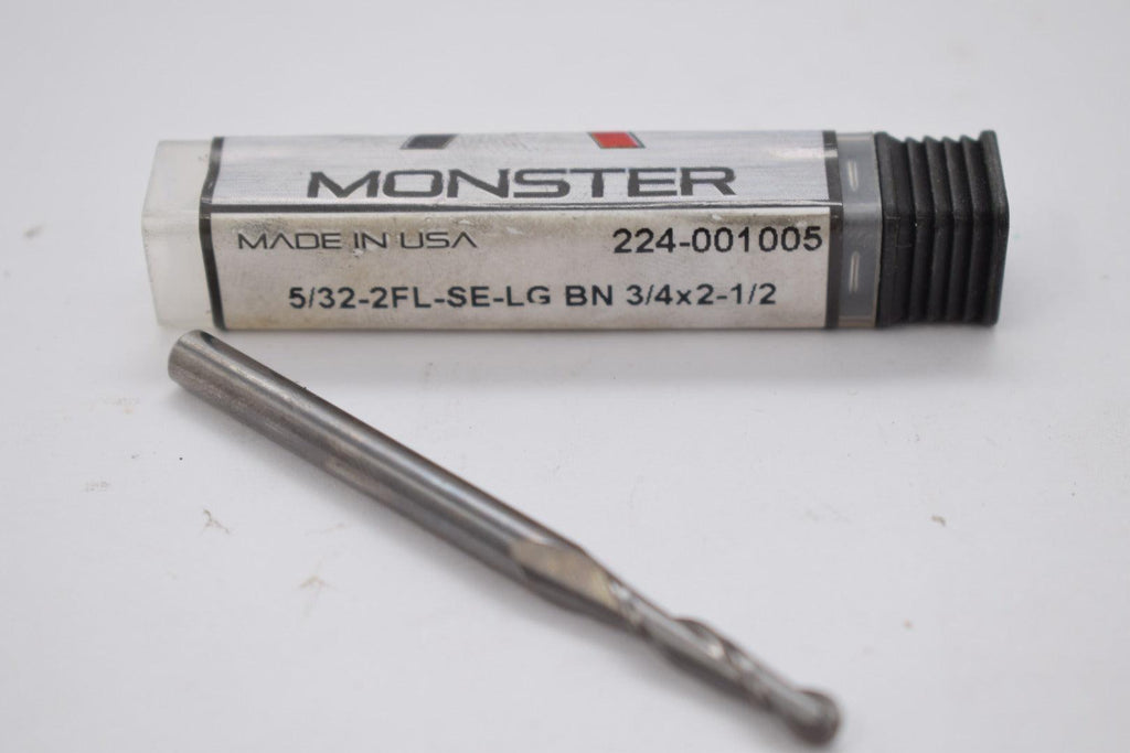 NEW Monster Tool 224-001005 Ball End Mill, 5/32 in, Carbide, Bright (Uncoated), Non-Coolant Through