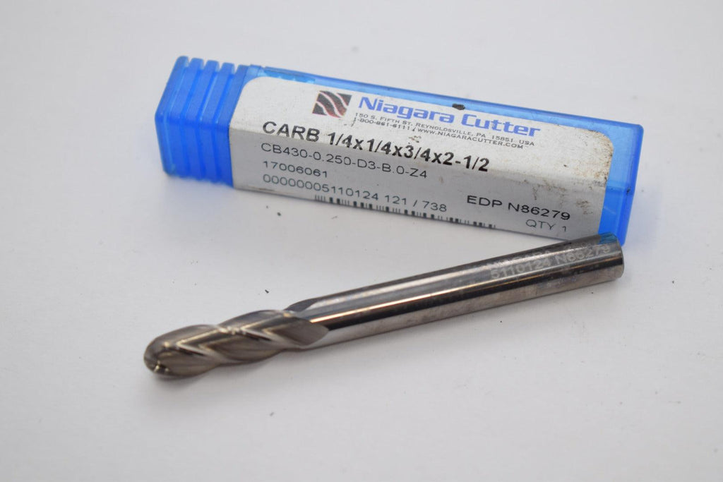 NEW Niagara Cutter N86279 1/4" Size, 3/4" LOC, 4 Flute, Solid Carbide Ball End Mill