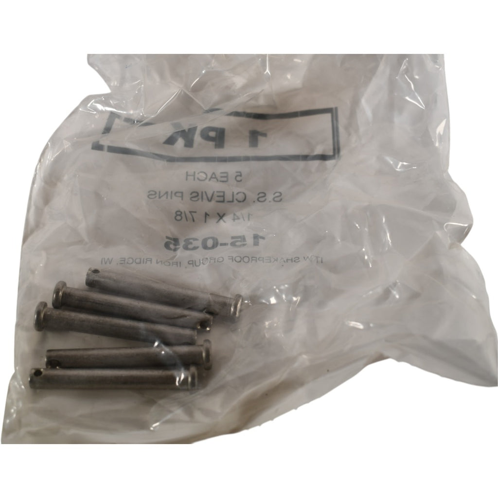 NOS, surplusNEW Pack of 5 Clevis Pin 300 Series Stainless Steel 1/4 x 1-7/8 15-035