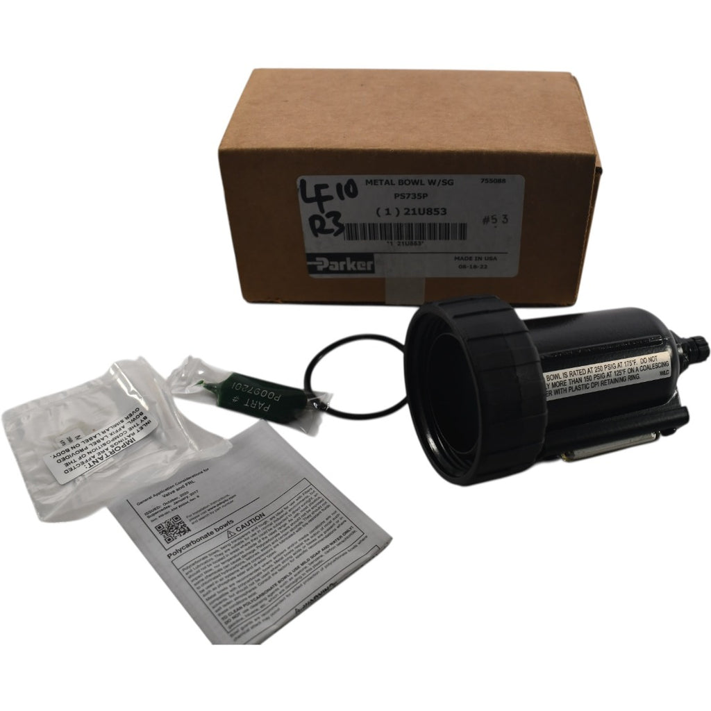 NEW Parker PS735P Metal Bowl W/SG Sight Gauge Zinc Manual Twist Drain 250 PSI