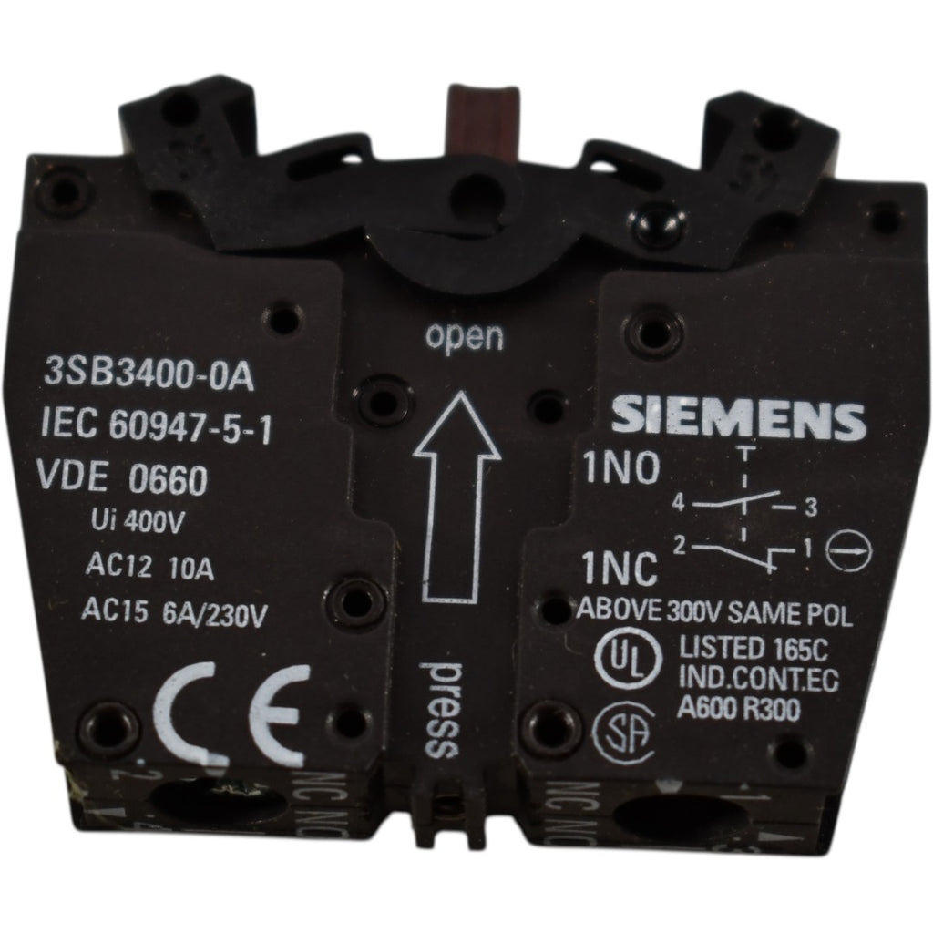 NEW Siemens 3SB3400-0A Contact Block 1NO 1NC 22mm Screw Terminal Front Mount