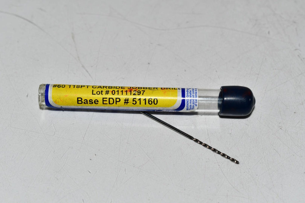 NOS, surplusNEW Ultra Tool 51160 #60 (.0400") Solid Carbide Jobber Length Drill, 118° Four Facet Point, 1-1/2"OAL, 3/4"LOC, Bright Finish