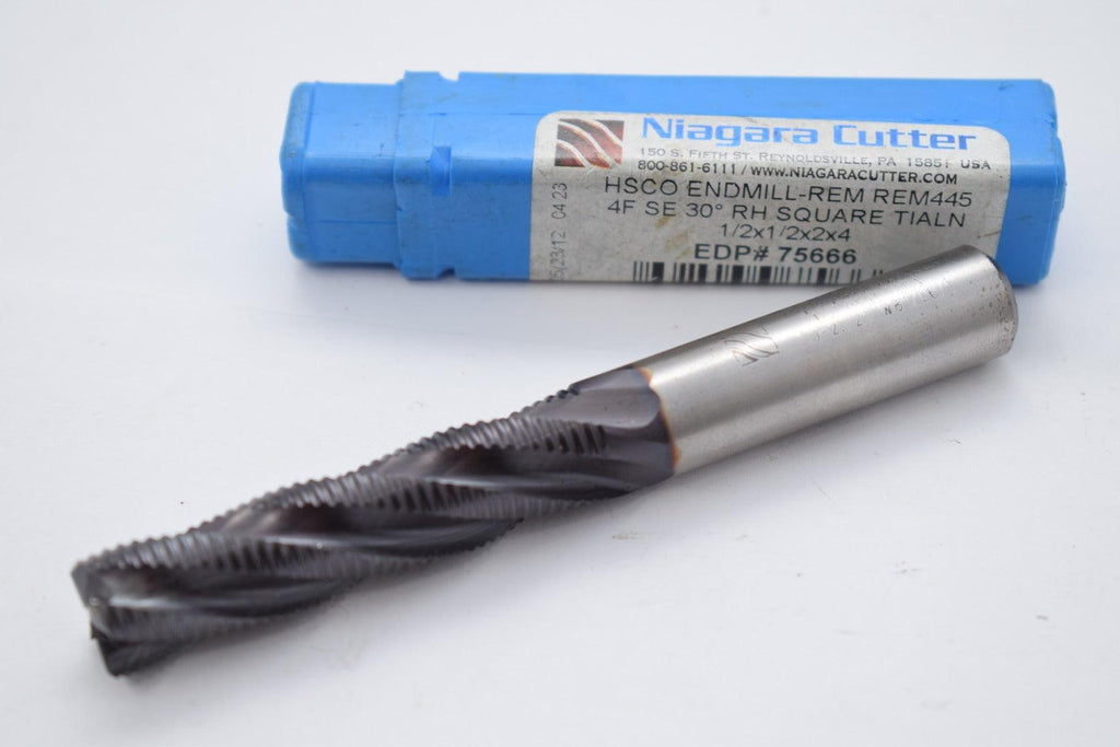 Used condition, with normal signs of wear. Comes as shown, please check pics.Niagara Cutter N75666 1/2'' End Mill 2'' LOC, 4 Flute Cobalt Roughing Square End Mill - TiAlN Finish, 4'' OAL, 1/2'' 30 deg. Helix
