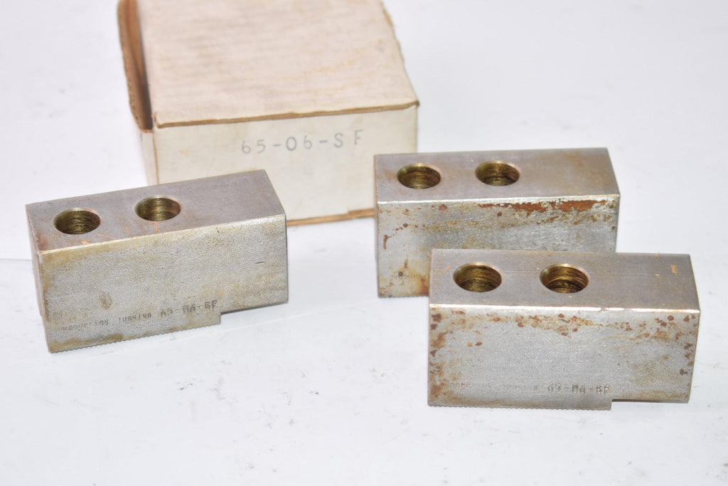 Used condition, with normal signs of wear. Comes as shown, please check pics.Pack of 3 Production Turning 65-06-SF Serrated Soft Chuck Jaw 3" OAL