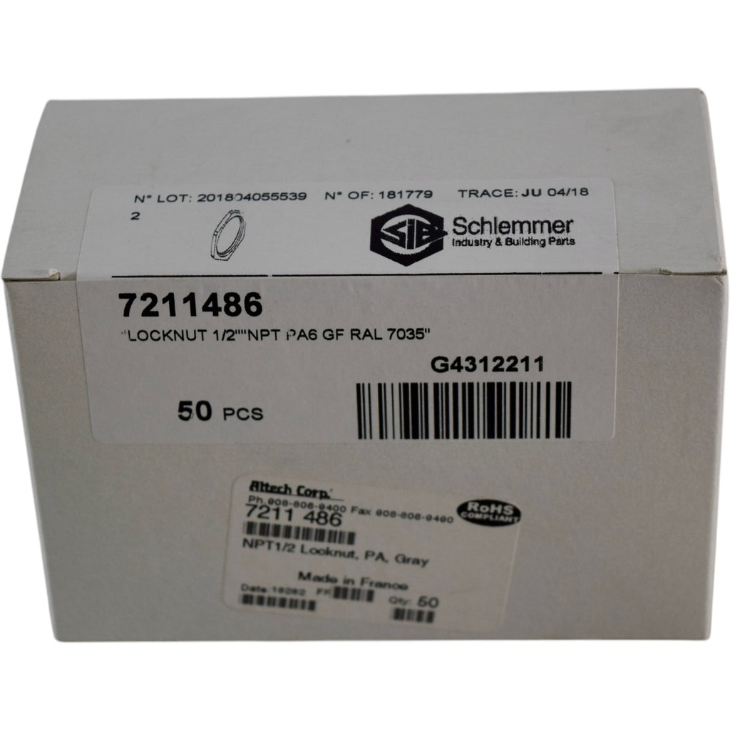 Pack of 50 NEW Schlemmer 7211486 Locknuts 1/2'' NPT PA6 GF RAL 7035
