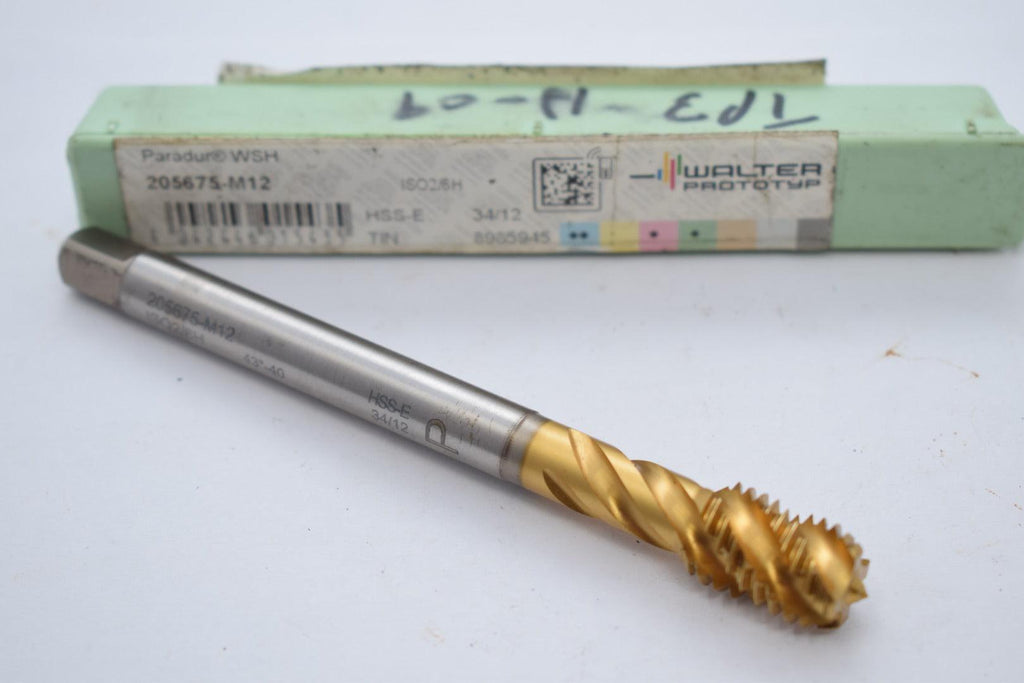 Used condition, with normal signs of wear. Comes as shown, please check pics.Walter 205675-M12 HSS-E Spiral Flute Point Tap ISO2/6H