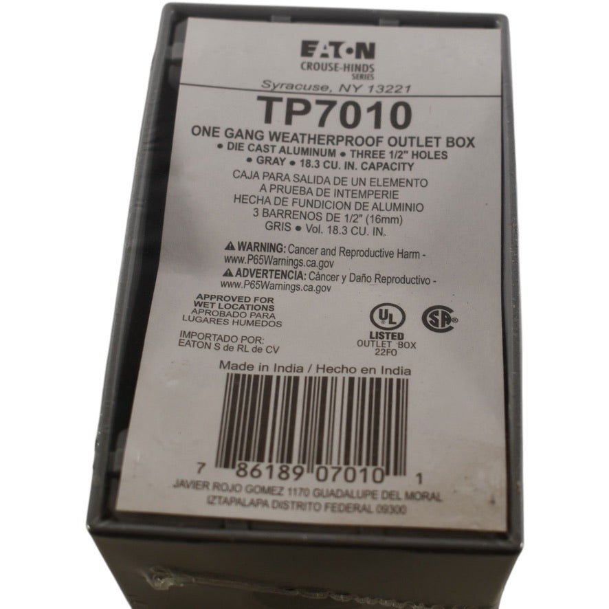 NEW Eaton Crouse-Hinds TP7010 Weatherproof Outlet Box 1-Gang Gray