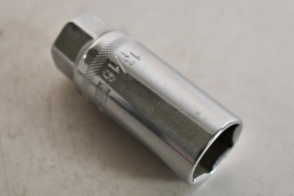 NOS, surplus no box. Minor storage wear, comes as shownNEW DeWalt 13/16" x 3/8" Dr Deep Polished Chrome Spark Plug Socket 86-381D 6Pt