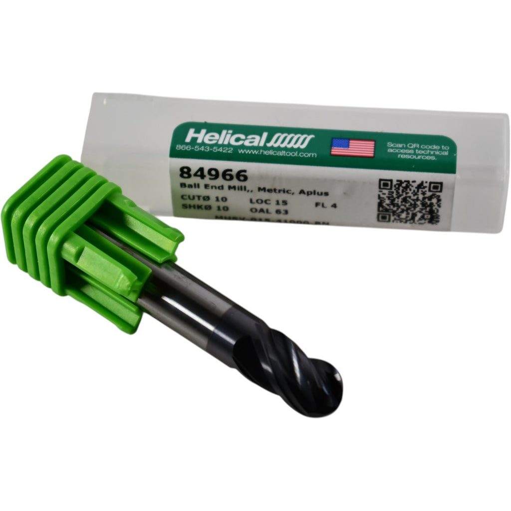 NEW Helical 84966 MHSV-4B Carbide Ball End Mill 10mm 4-Flute 15mm LOC Aplus