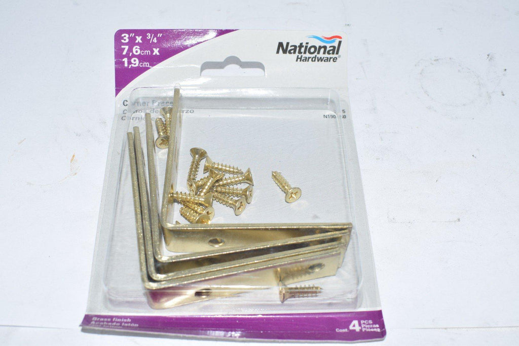 NOS, surplusNEW National Hardware N190-850 Corner Braces 3 By 3/4 By 0.11 Inch Brass Finish Steel 4 Pack